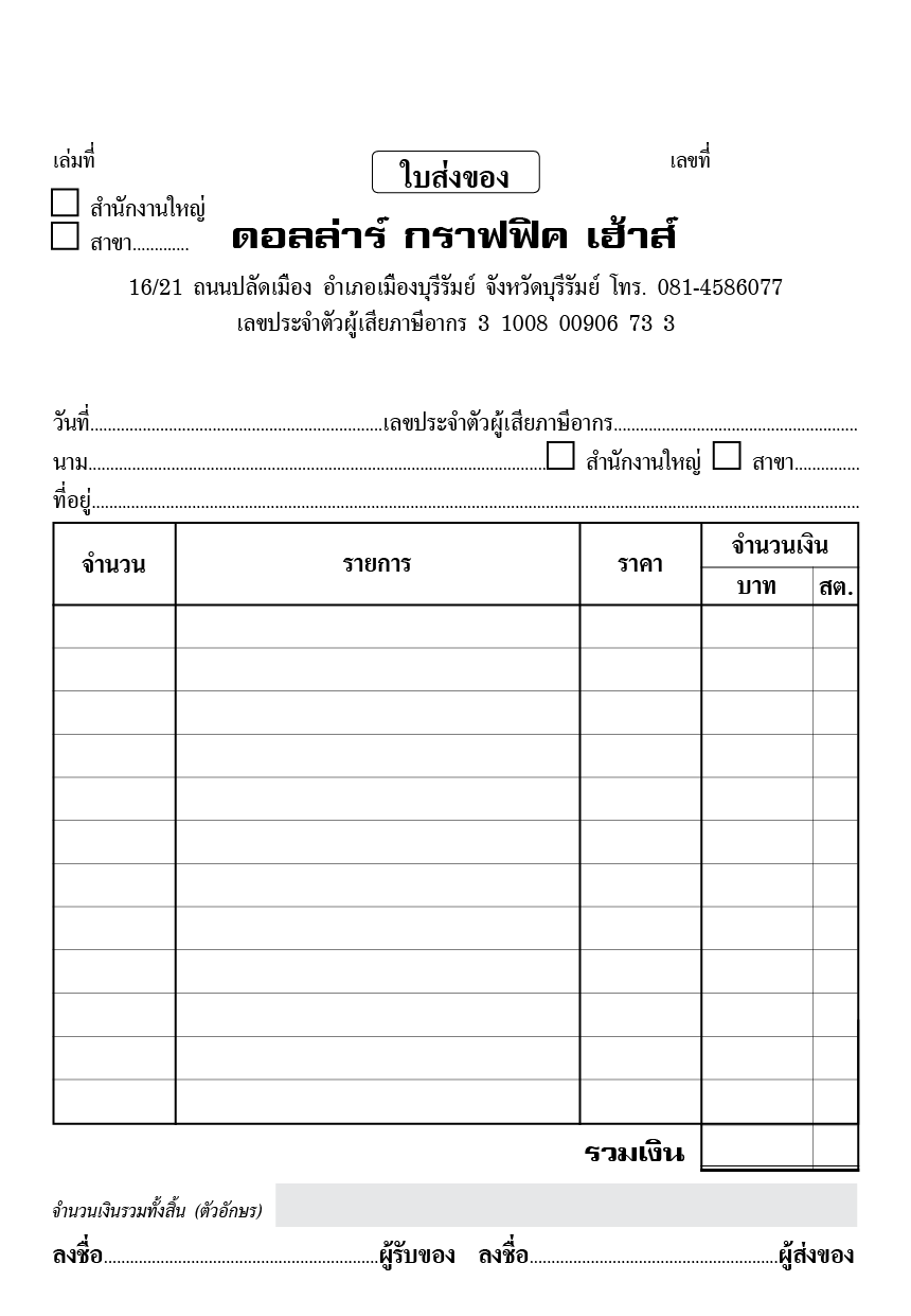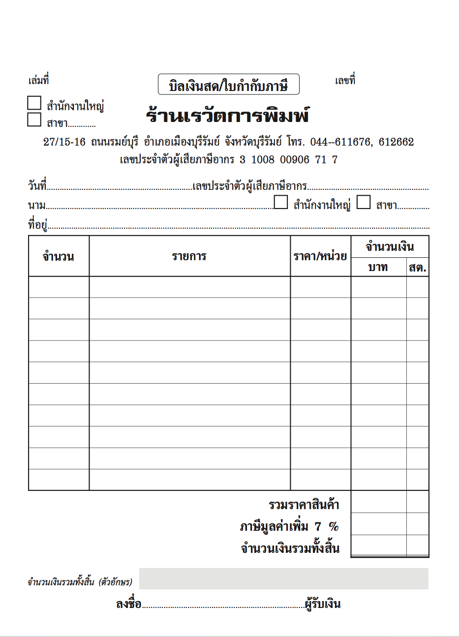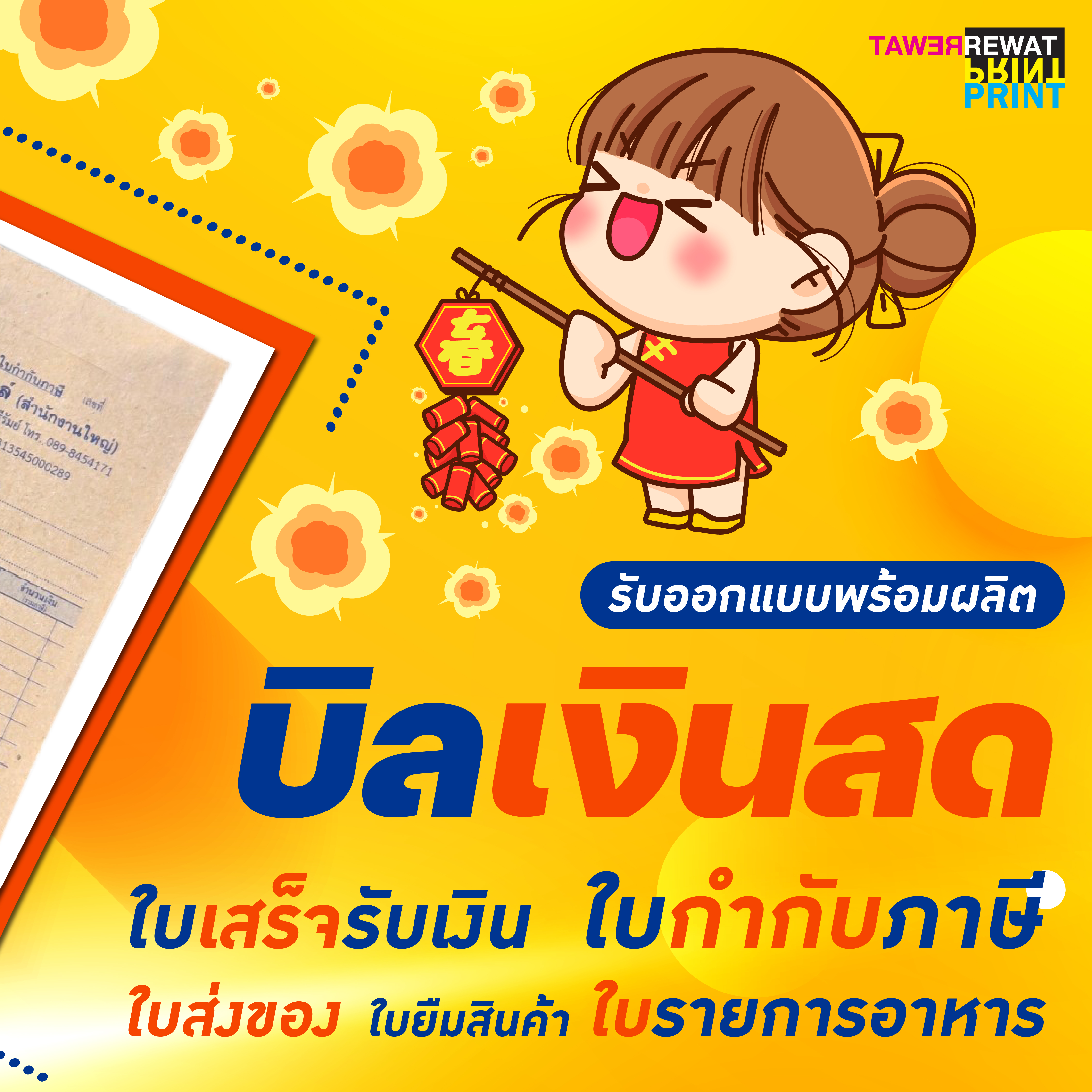 บิลเงินสด / ใบกำกับภาษี / ใบเสร็จรับเงิน / บิลทุกประเภทถูกต้องตามหลักกรมสรรพากร / กระดาษต่อเนื่อง
